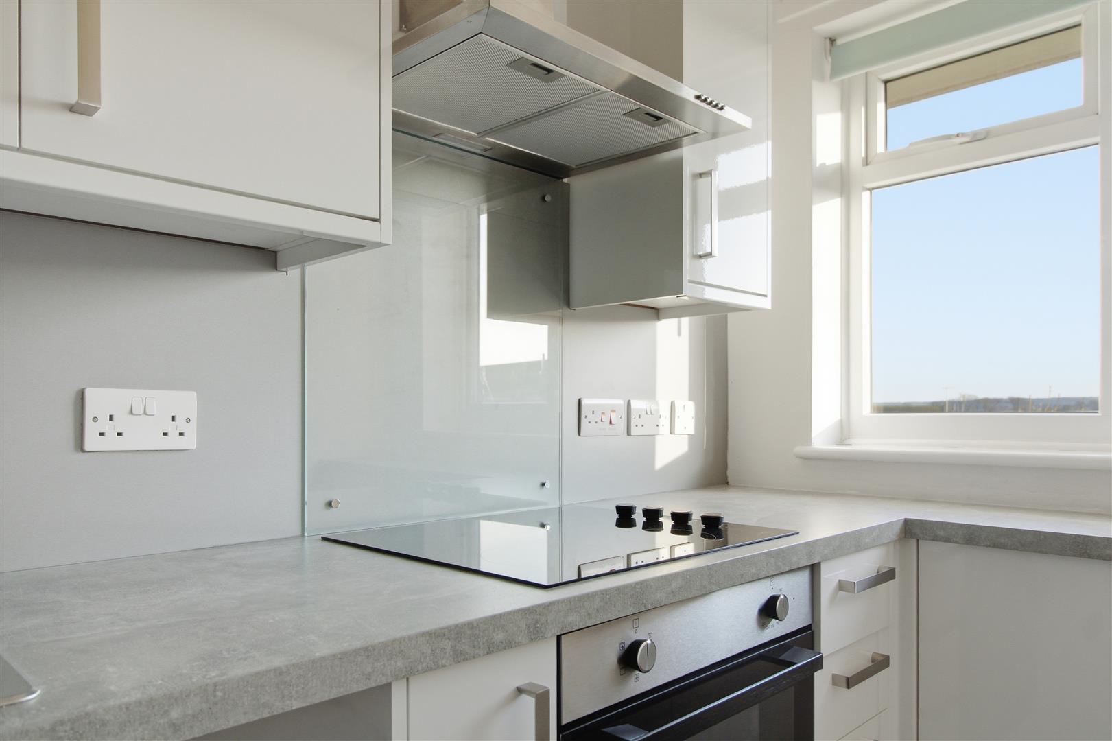 Double glazed window to rear. Range of wall and base units. Gas meter. Work surface with sink and drainer. Four ring electric hob with oven below and cooker hood above. Space for fridge freezer and washing machine.