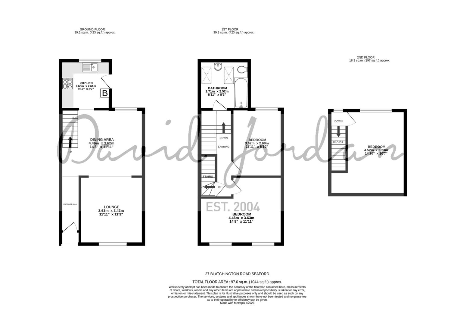 The first floor has the advantage of a large family bathroom and two bedrooms. A further double bedroom with ample eaves storage is located on the second floor.