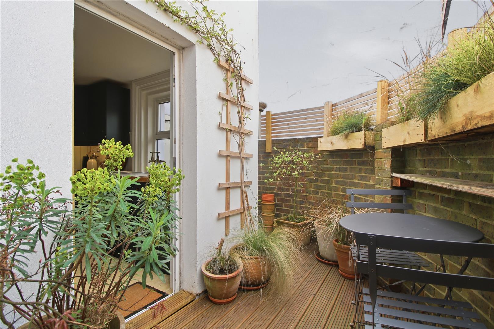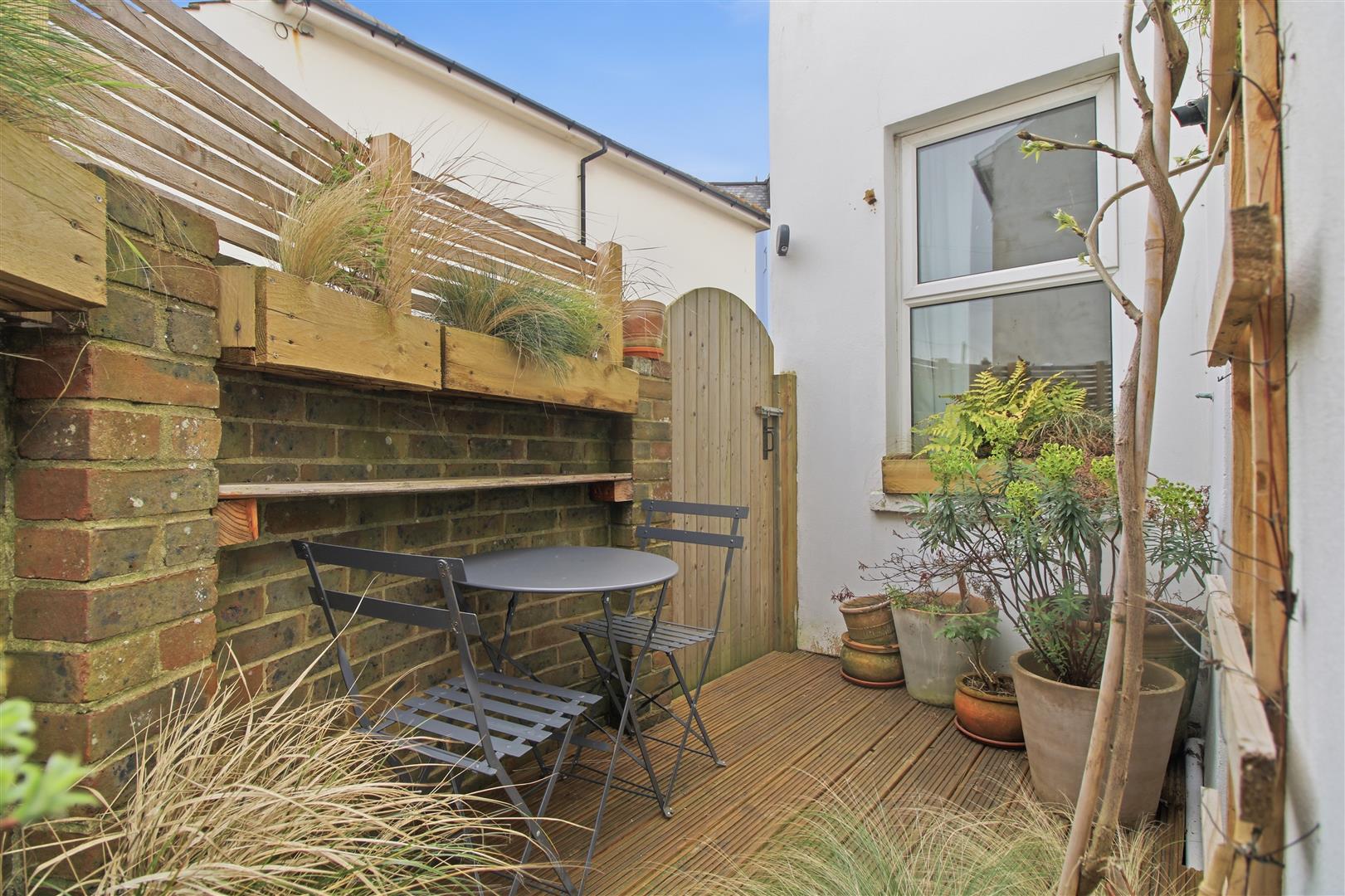 Decked area. Gated access to side. Storage area.