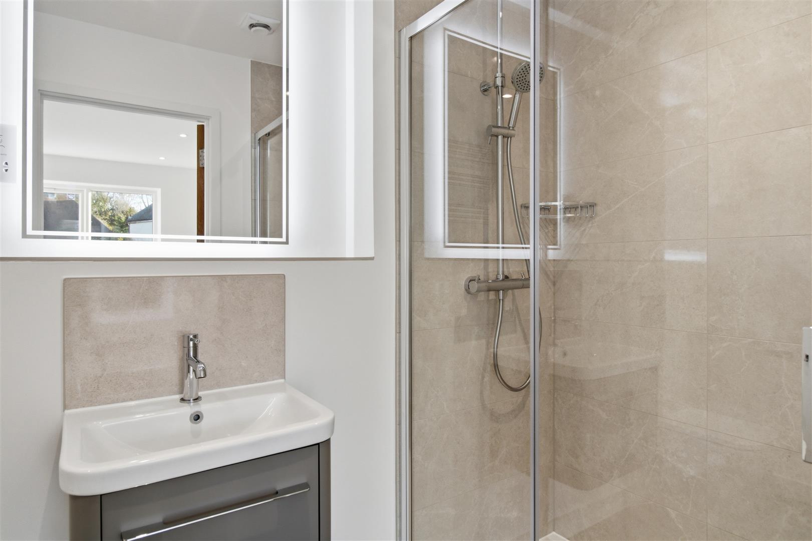 Double glazed window. Bath with shower attachment. Close coupled WC with concealed cistern. Wall mounted wash basin with tiled shelf above with backlite mirror and shaving point. Extractor fan. Radiator.