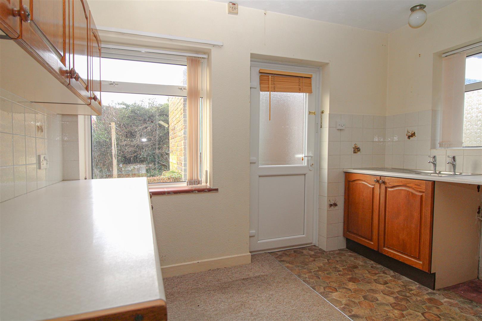 With wall and base units. Work surface with inset sink and drainer. Space for cooker, washing machine and under counter fridge and freezer. Worcester-Bosch wall mounted gas fired boiler. Double glazed widow and door to rear. Part tiled walls.
