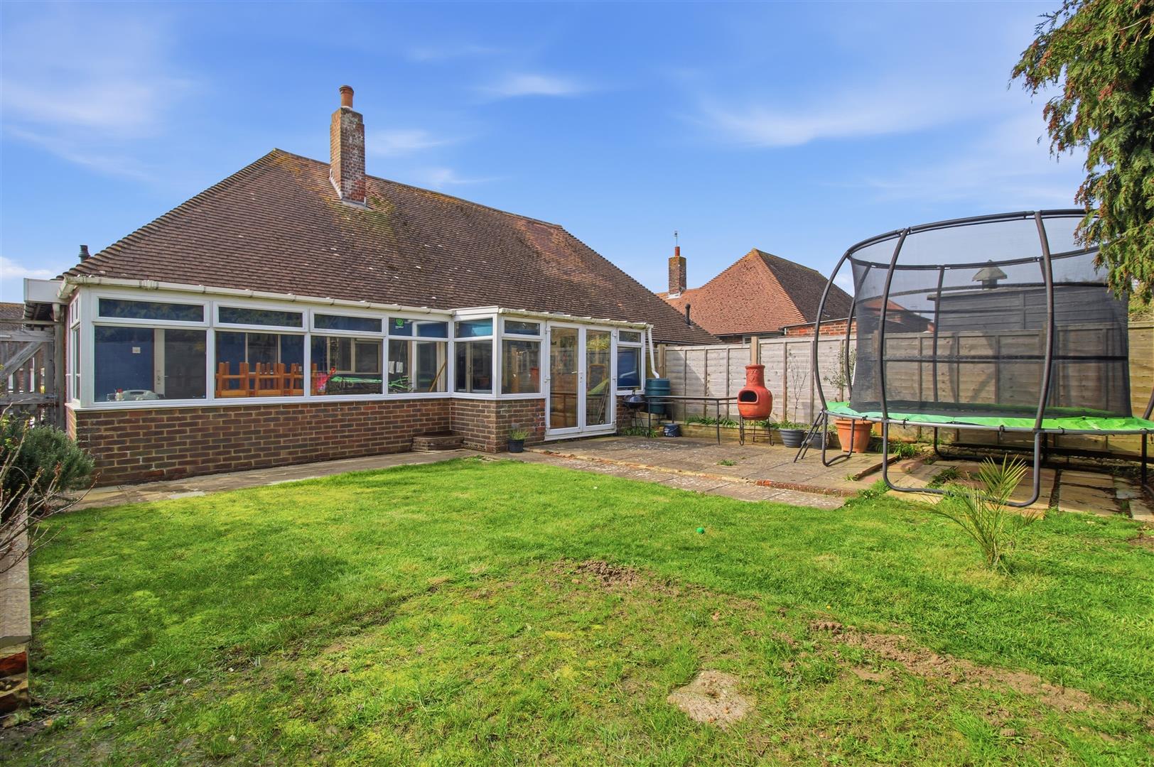 The property includes a bright sitting room with sliding doors leading into a spacious split conservatory, ideal for relaxing or entertaining, with access to the rear garden. The kitchen is fitted with a range of units and integrated appliances, along with a breakfast seating area.