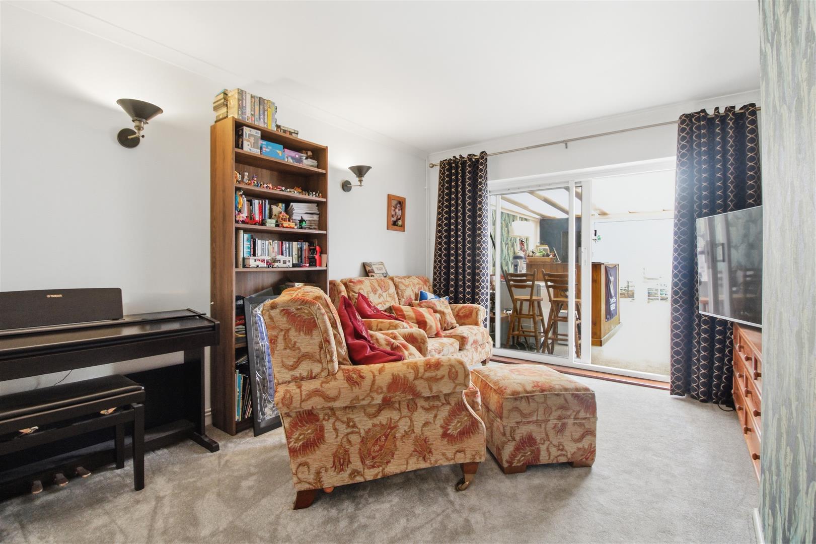 Radiator. Wall mounted lights. Sliding doors into conservatory.