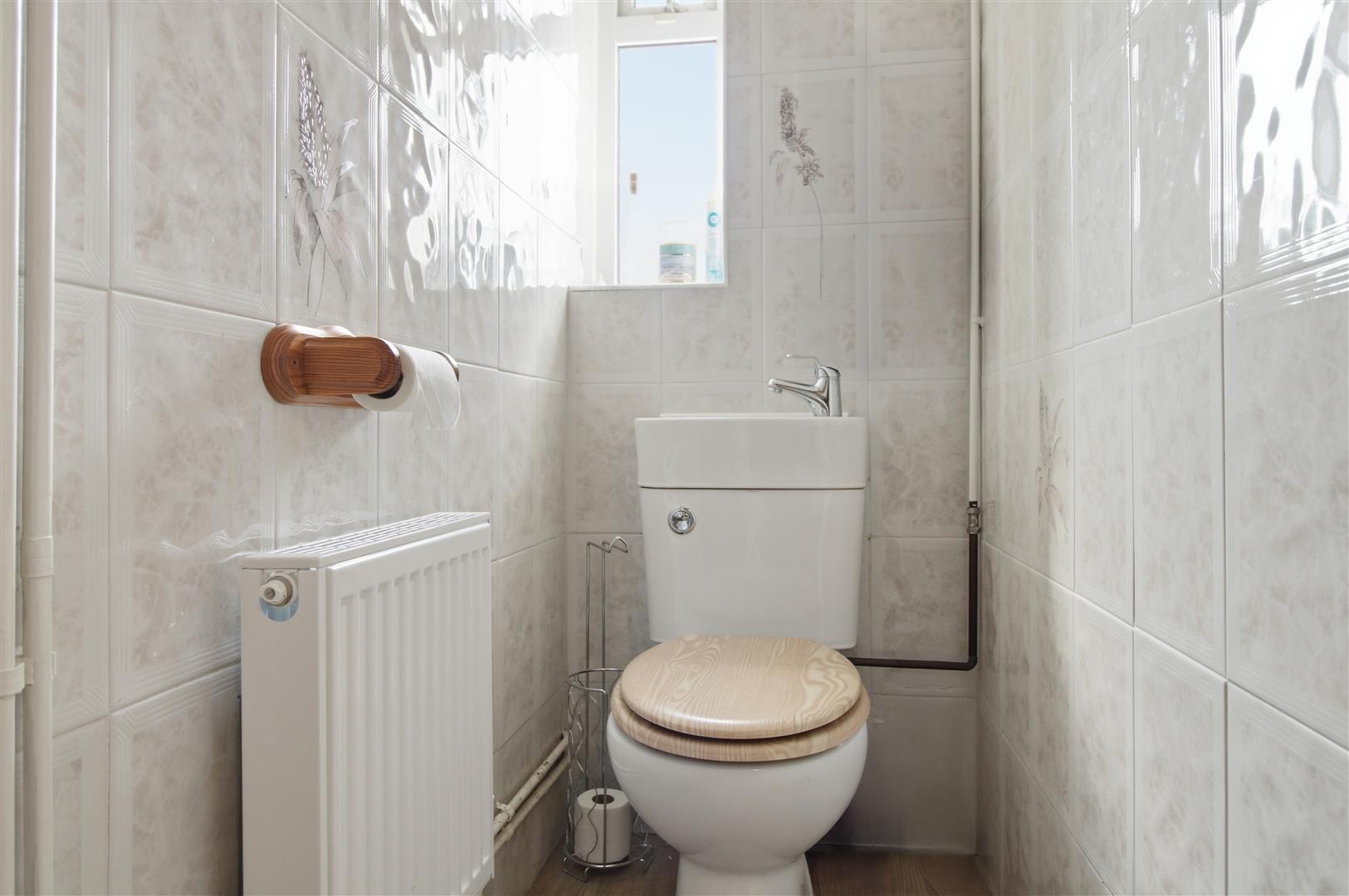 WC with integrated washbasin. Radiator. Obscure glass window to the front.