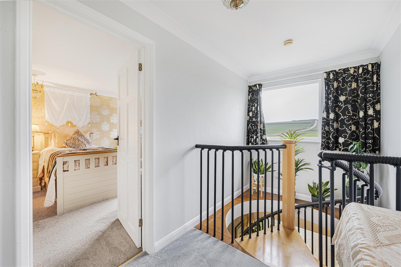 Double glazed window to front with far reaching views to fields. Hatch to loft. Linen cupboard with hot water cylinder.