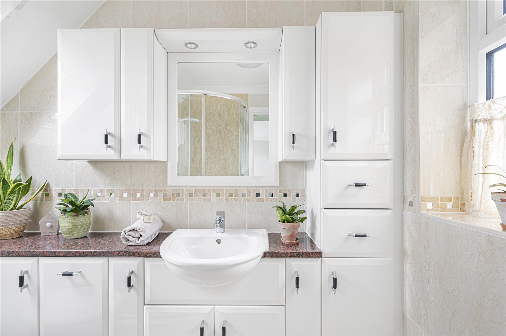 Double glazed window to rear. Towel rail. Vanity unit with mirror above.
