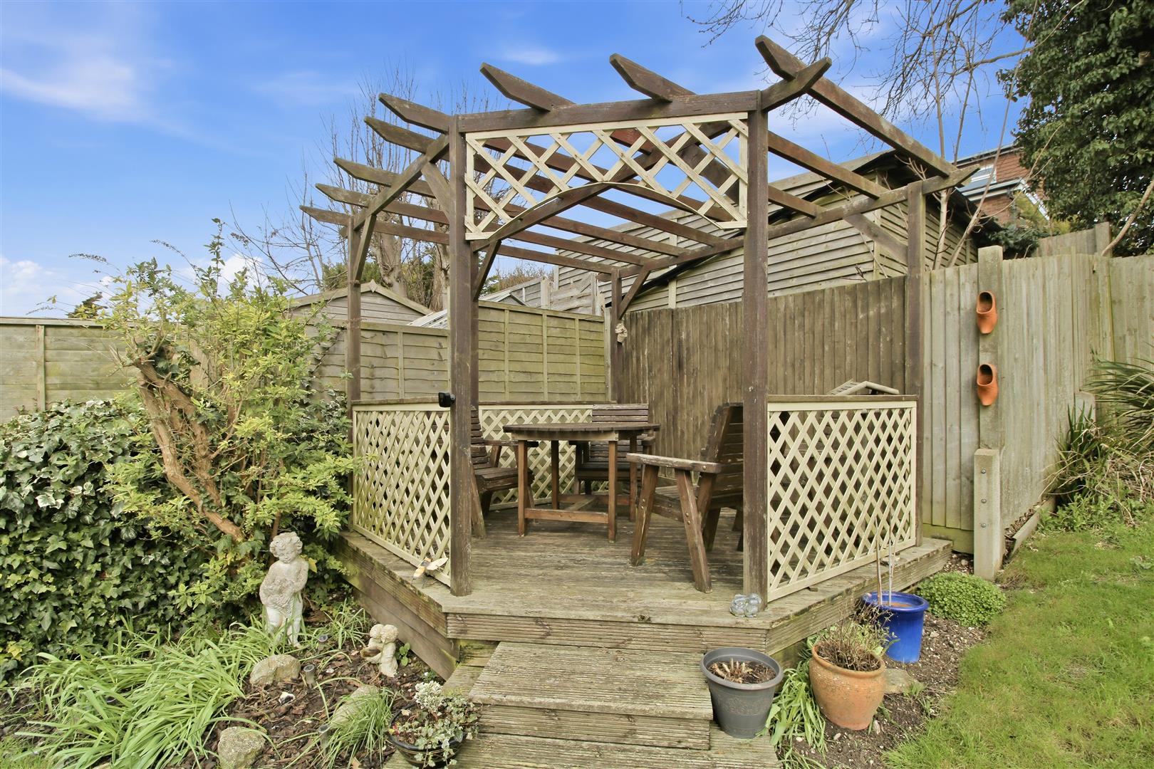 Fully fence enclosed. Mainly laid to lawn. Raised decking area. Storage shed. Range of shrubs and bushes.
