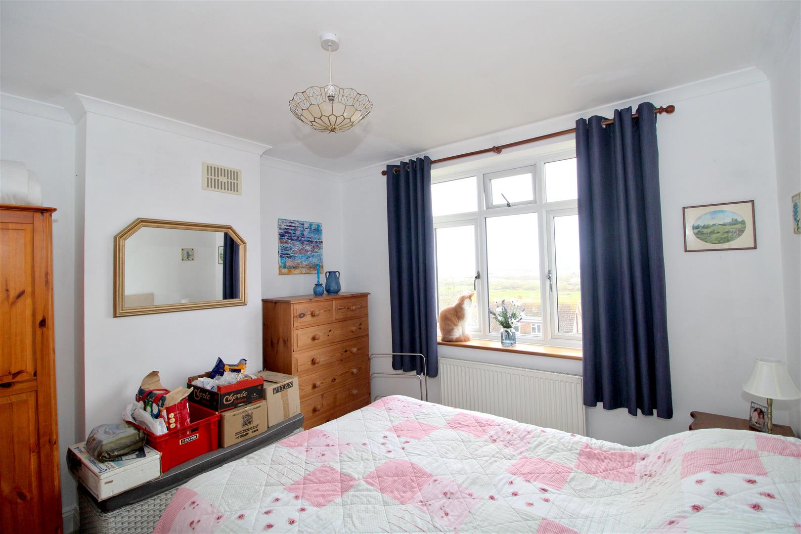 Window overlooking the front garden with views towards Newhaven Fort and the sea. Range of built-in wardrobes. Radiator.