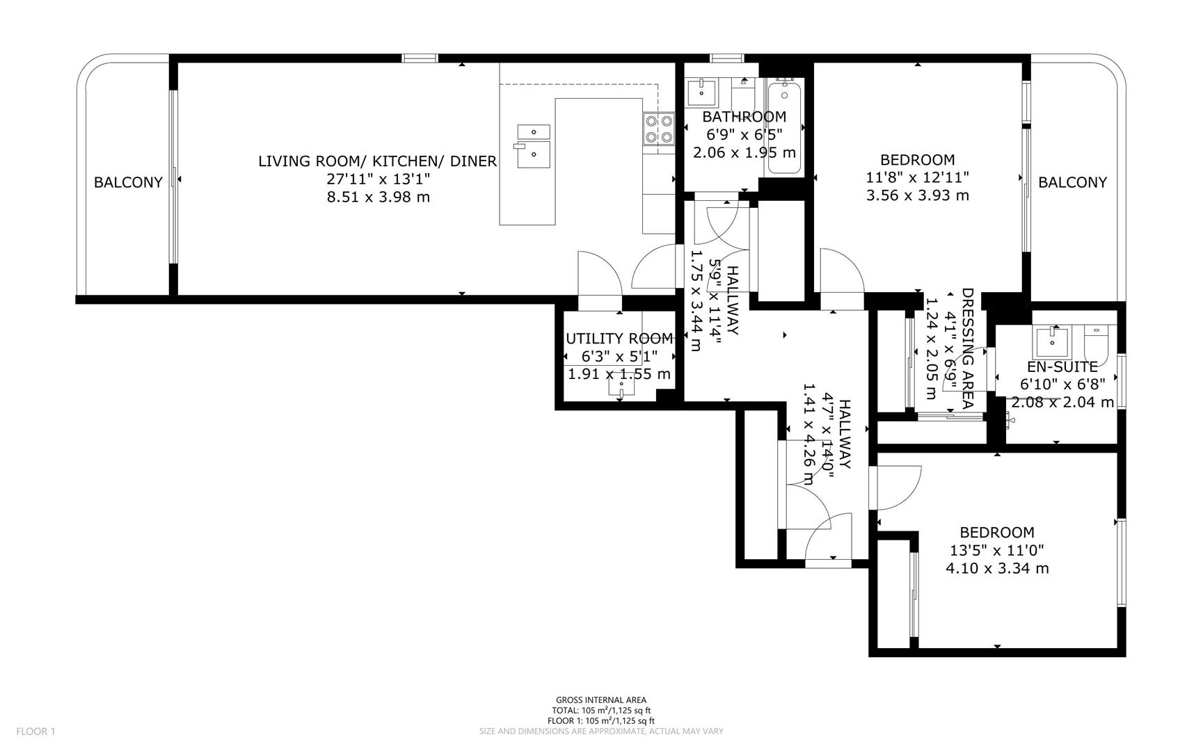 The accommodation comprises 27' dual aspect living kitchen and dining room. There is also a utility room, family bathroom, main bedroom with dressing area, balcony and en-suite shower room a further double bedroom which is currently arranged as a study/dressing room. Delightful views towards Seaford seafront can be enjoyed from the spacious balcony off the main living area. The balcony off the main bedroom provides a pleasant outlook towards Newhaven Bay.