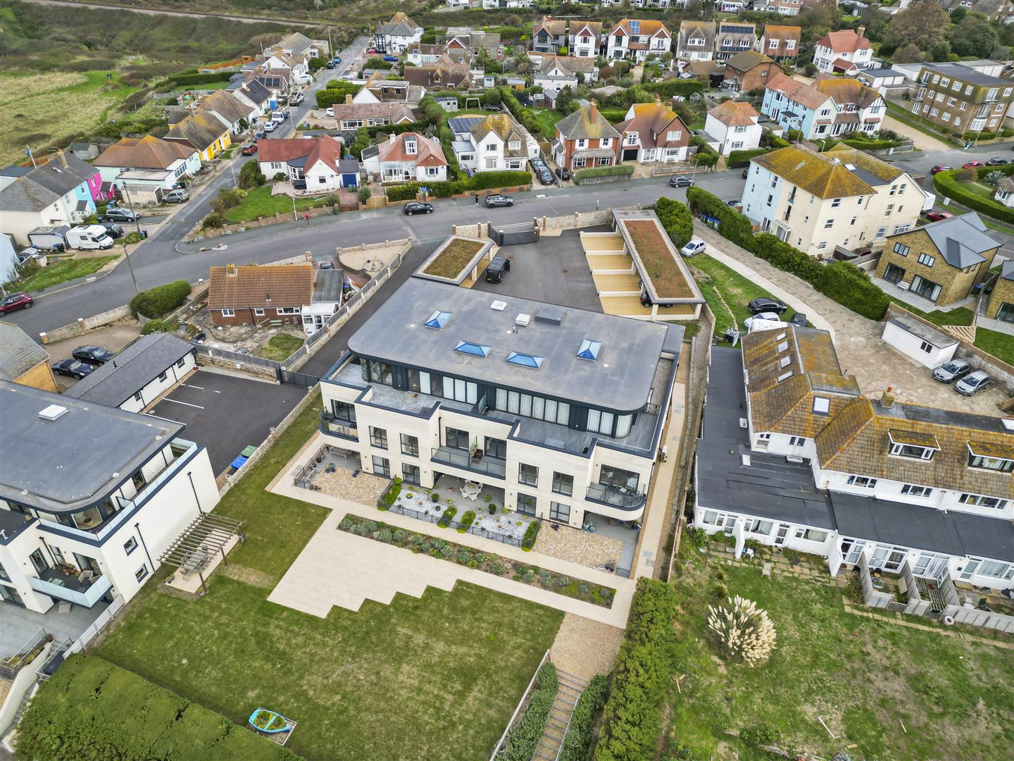 Northerly aspect. Views towards Seaford bay and the sea. Curved tinted glass balustrade.