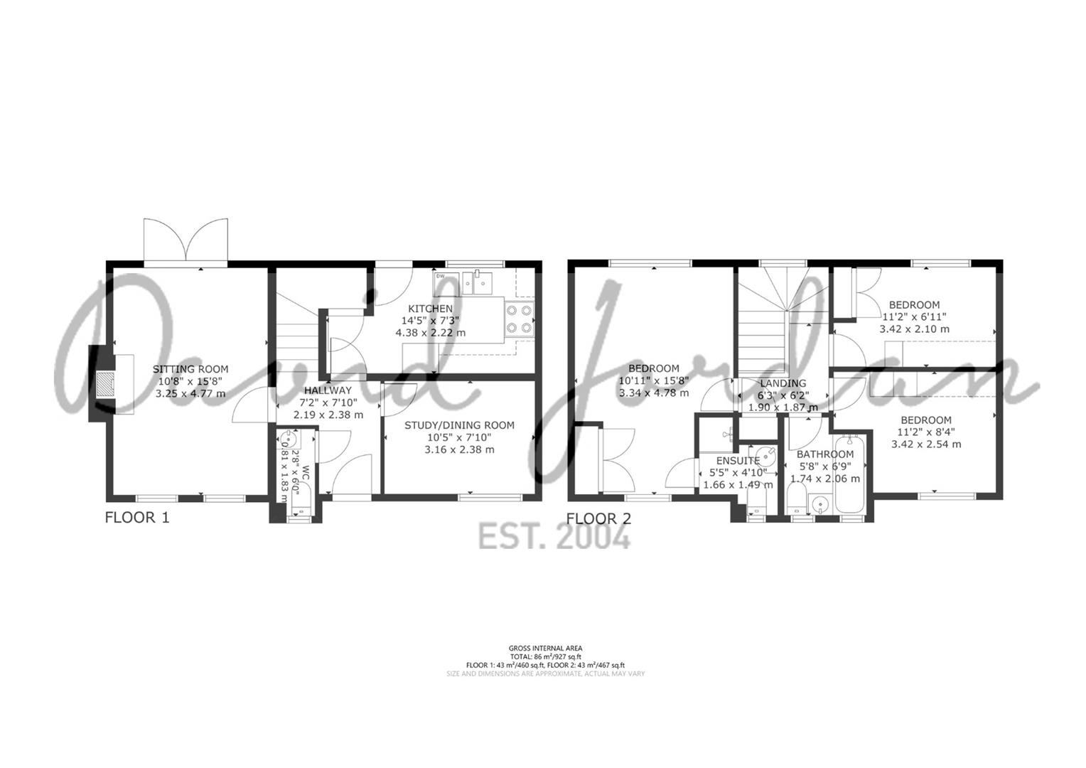 Engineered oak flooring flows from the entrance hall through to the dual aspect living room, dining room/study, well-fitted kitchen and cloakroom. There are three double bedrooms, with the main bedroom benefiting from an en-suite shower room. A family bathroom also sits on the first floor.