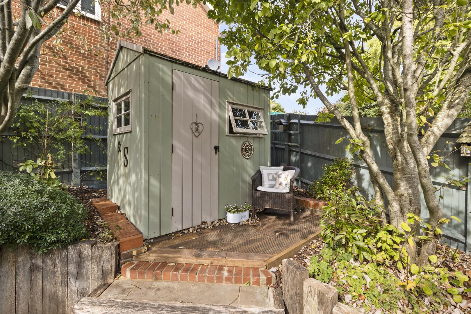 Fully fence enclosed. Mainly laid to lawn and the remainder laid to shingle. There is a decorated and insulated Summerhouse built on oak decking. Range of shrubs, bushes, raised vegetable beds and tool shed. Access from side to front.