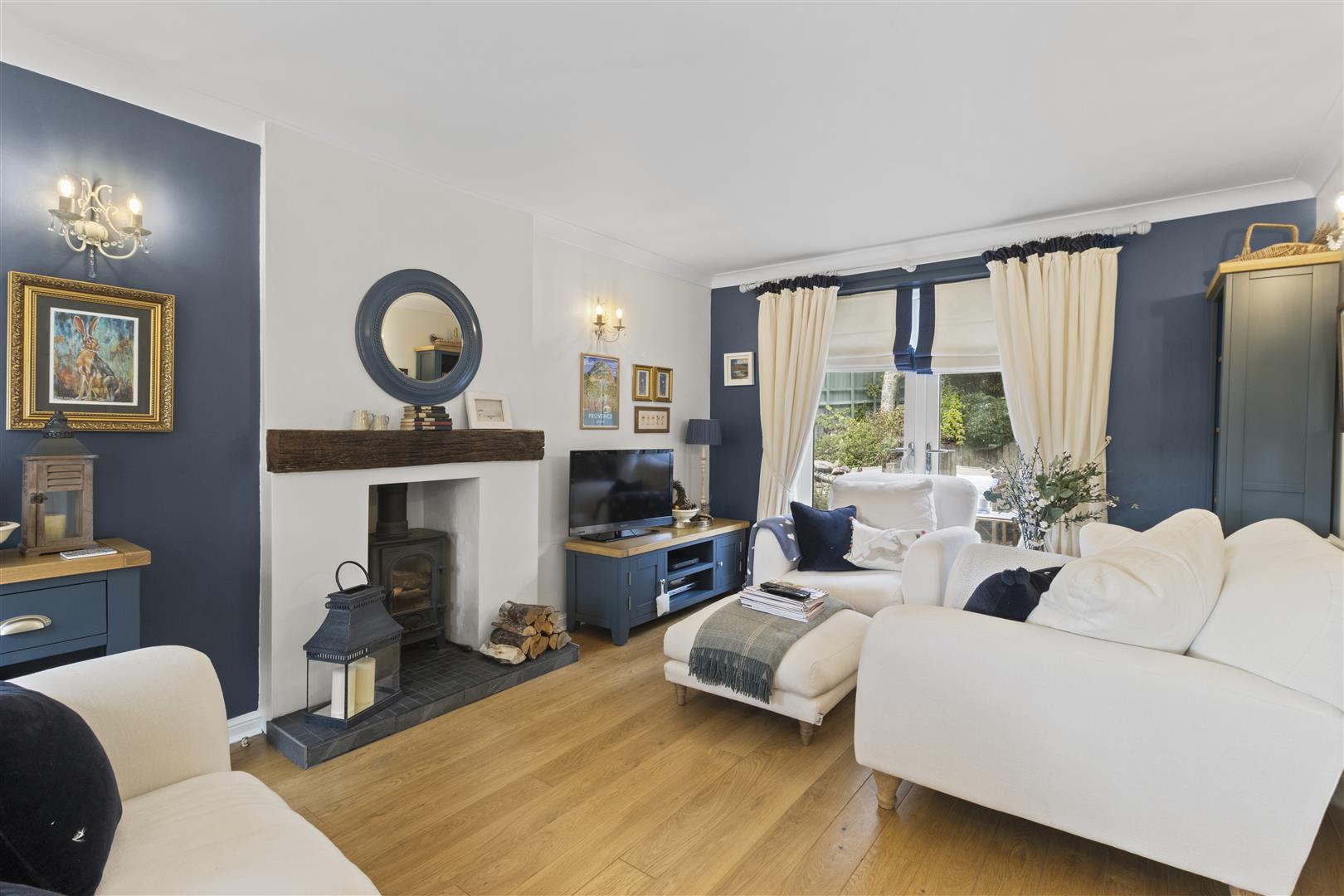 Dual aspect. Wood burning stove. Two radiators. French doors leading out to rear garden.