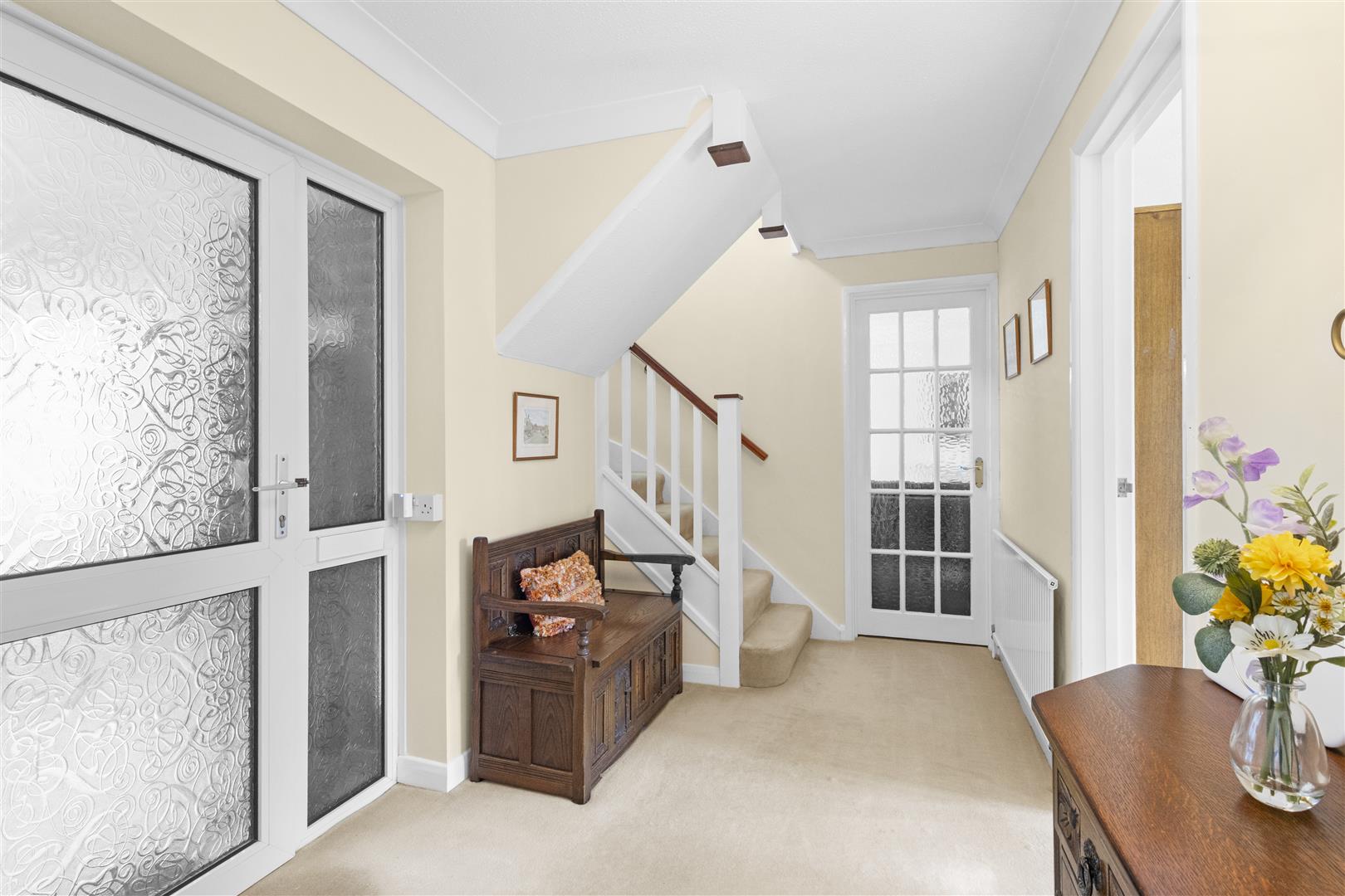Storage cupboard. Stairs to first floor. Two radiators.