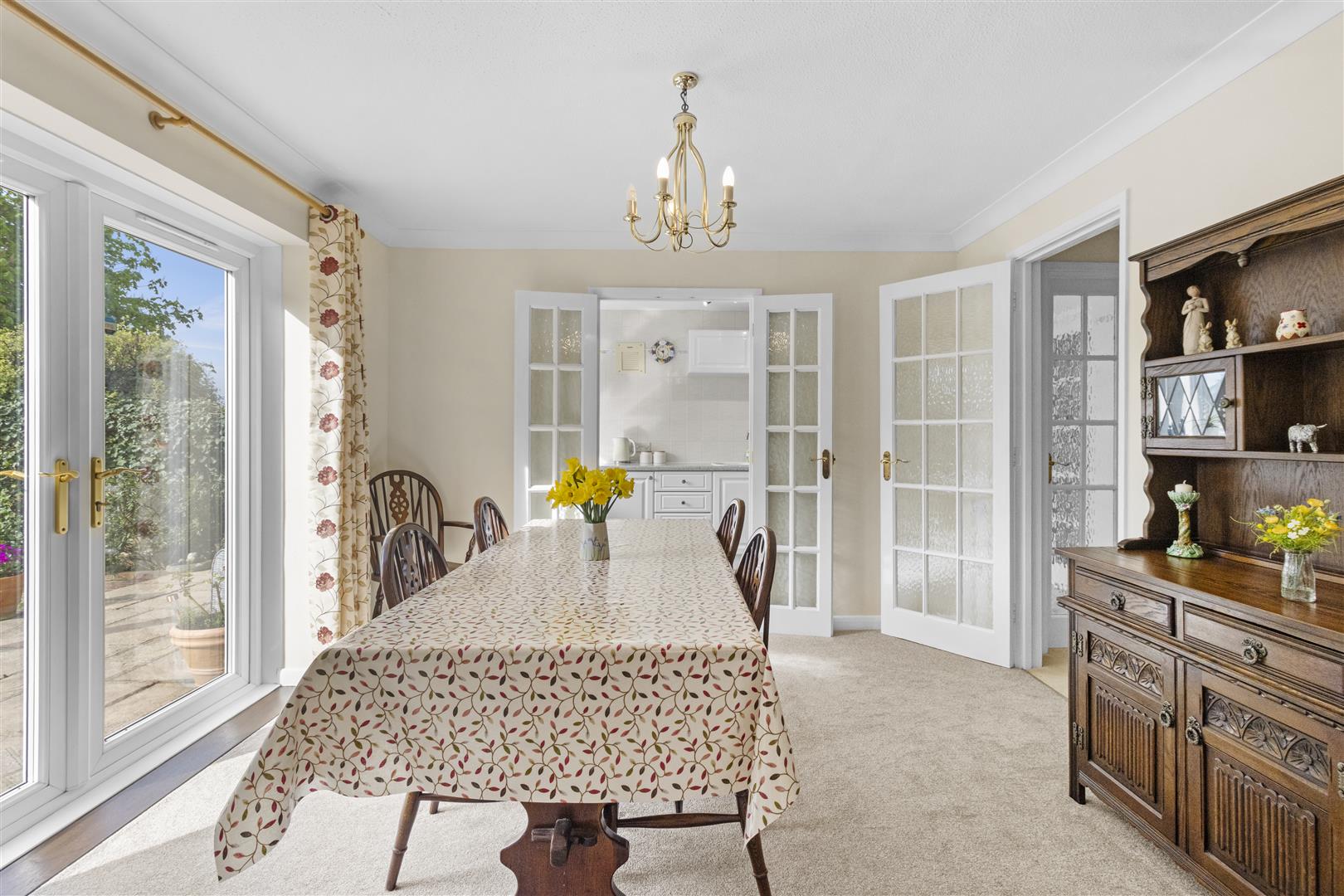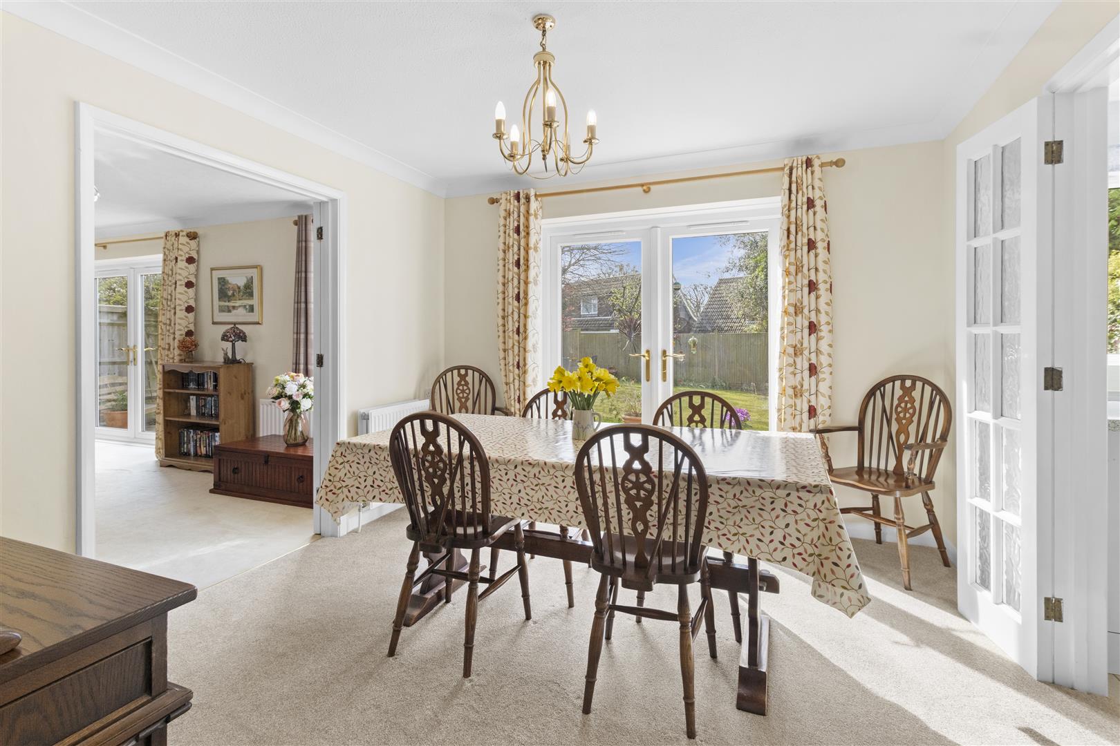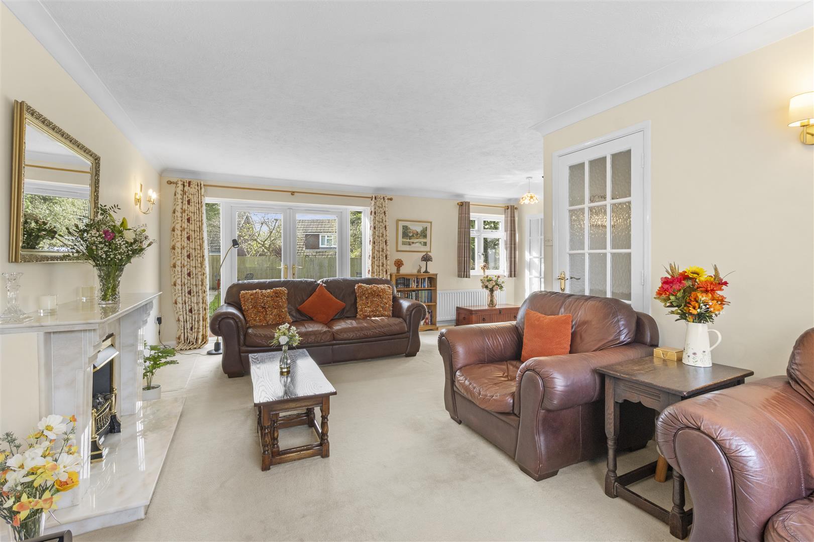 Dual aspect. French doors Two radiators. Electric fire with marble surround.