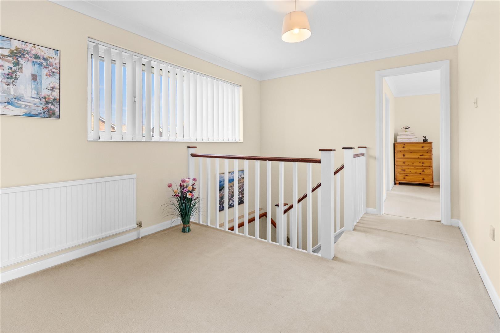 The property offers a good level of accommodation, with the ground floor having a generous-sized entrance porch, hallway, dual aspect living room, dining room, galley-style kitchen, separate utility room, cloakroom and internal access to the double garage. Upstairs, there is a very large landing, granting access to four bedrooms, two en-suites and a Jack-and-Jill style family bathroom.