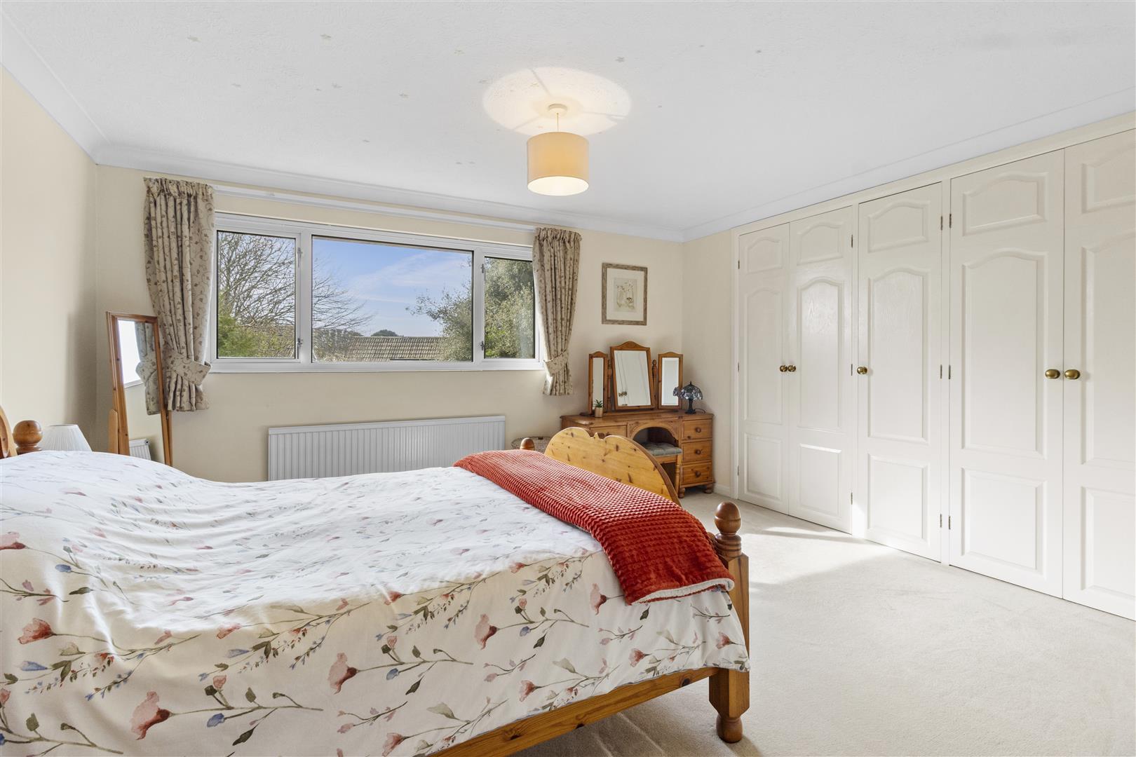 Large window to rear overlooking the garden. Range of fitted wardrobes. Radiator. Door into: