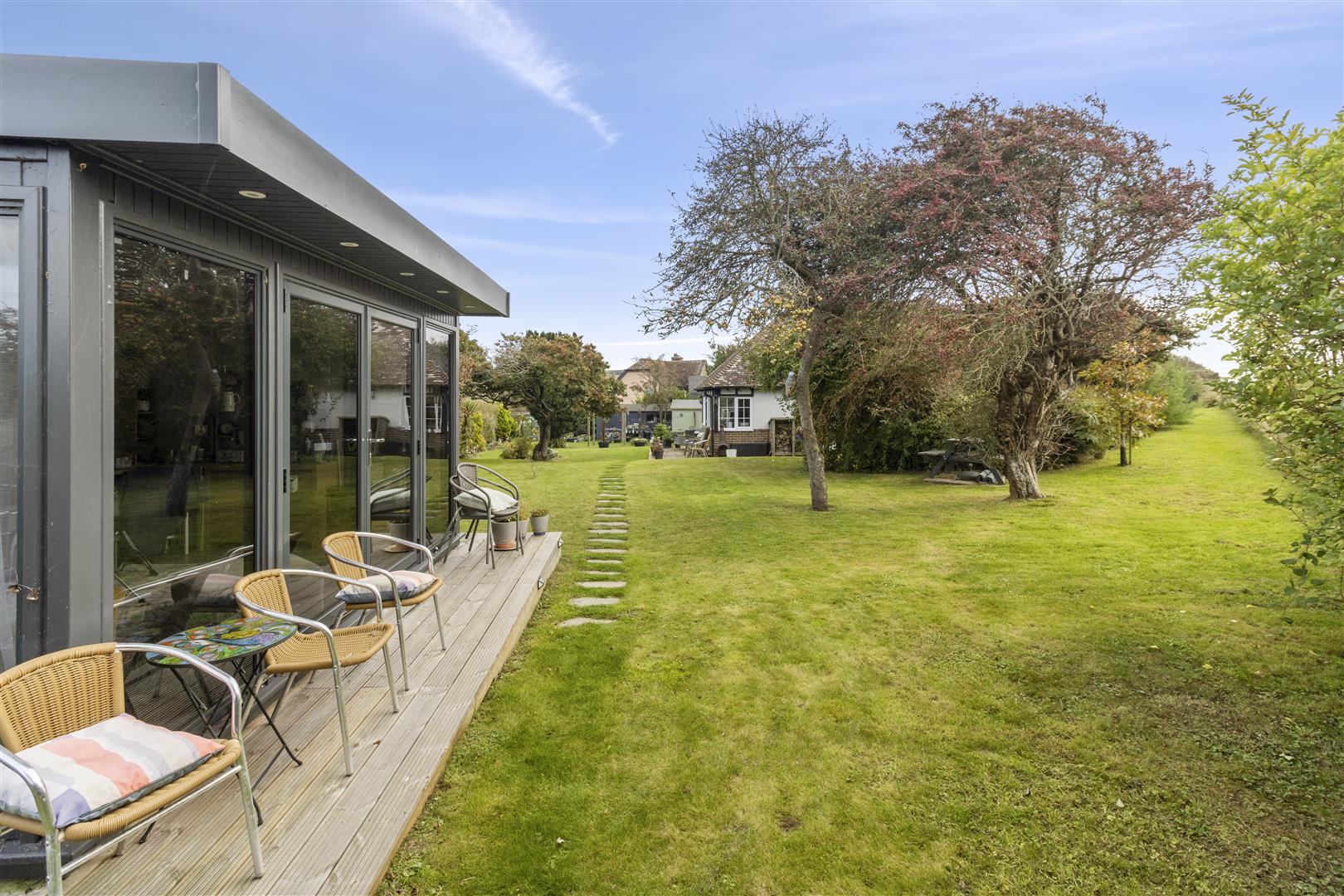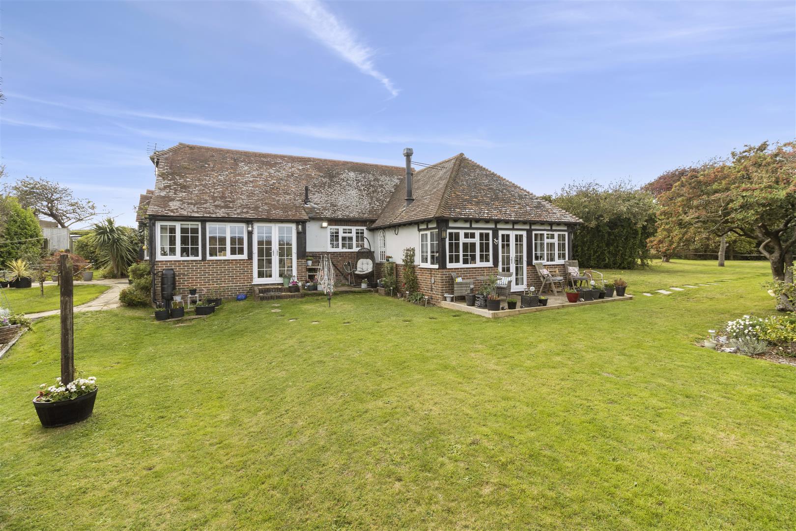 Outside, the mature south-facing gardens provide multiple seating areas, extensive lawns, and a contemporary garden studio, perfect as a home office or hobby space. Ample parking is provided via a long driveway via The Cuckmere Inn.