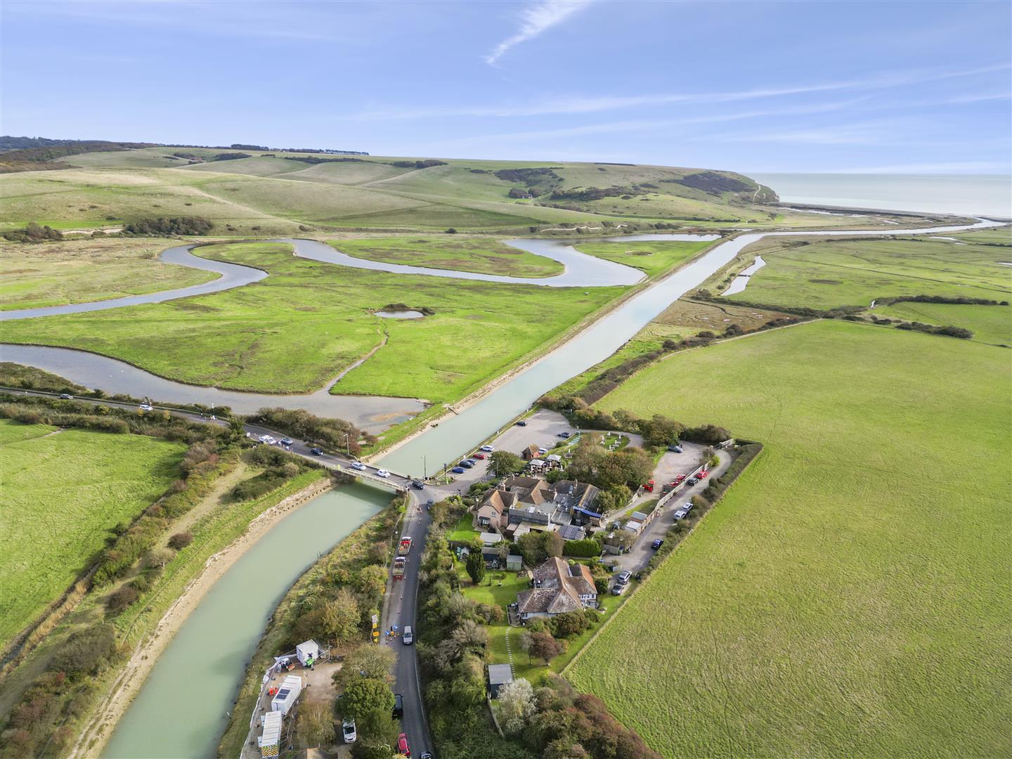 The property is approached via The Cuckmere Inn car park, then via electric sliding gate opening onto a private driveway providing ample parking.