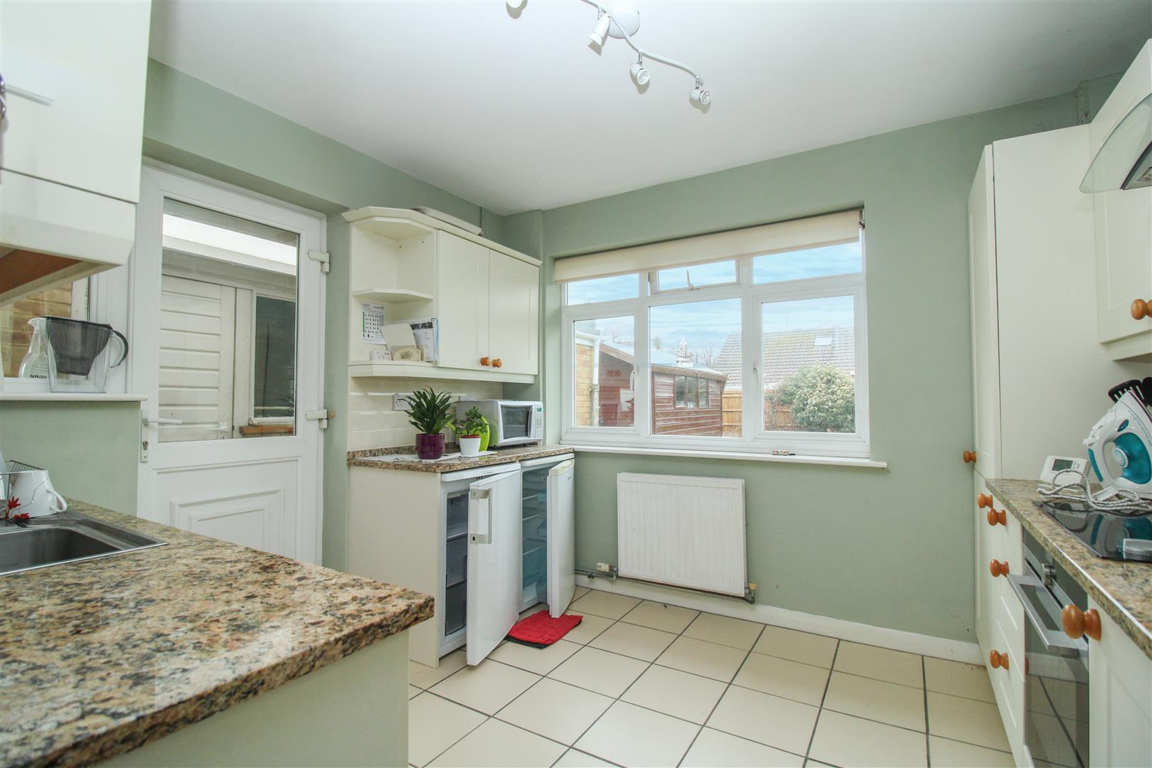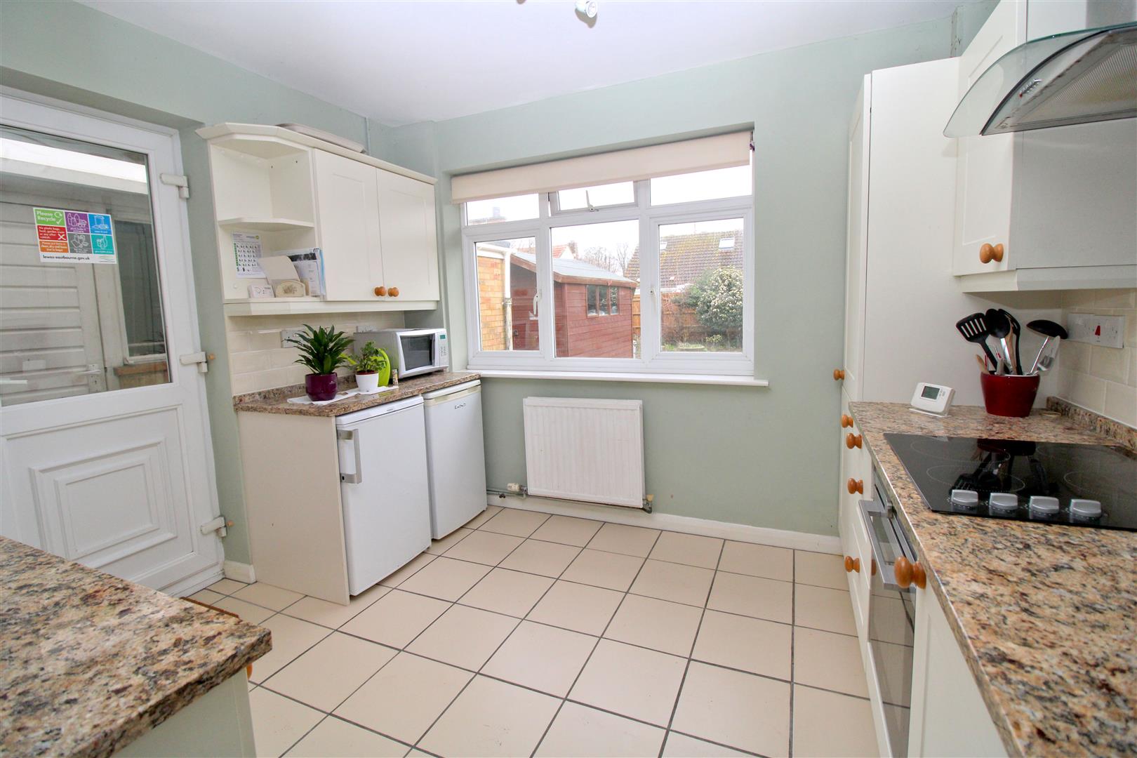 Fitted range of base and wall mounted cupboards. Work tops extending to incorporate four ring electric hob, with oven beneath. Sink unit, space for appliances. Cupboard housing Glow-worm gas fired boiler. Door to covered sideway having personal access to the garage and rear garden. Double glazed window overlooking attractive rear garden. Radiator. Tiled floor