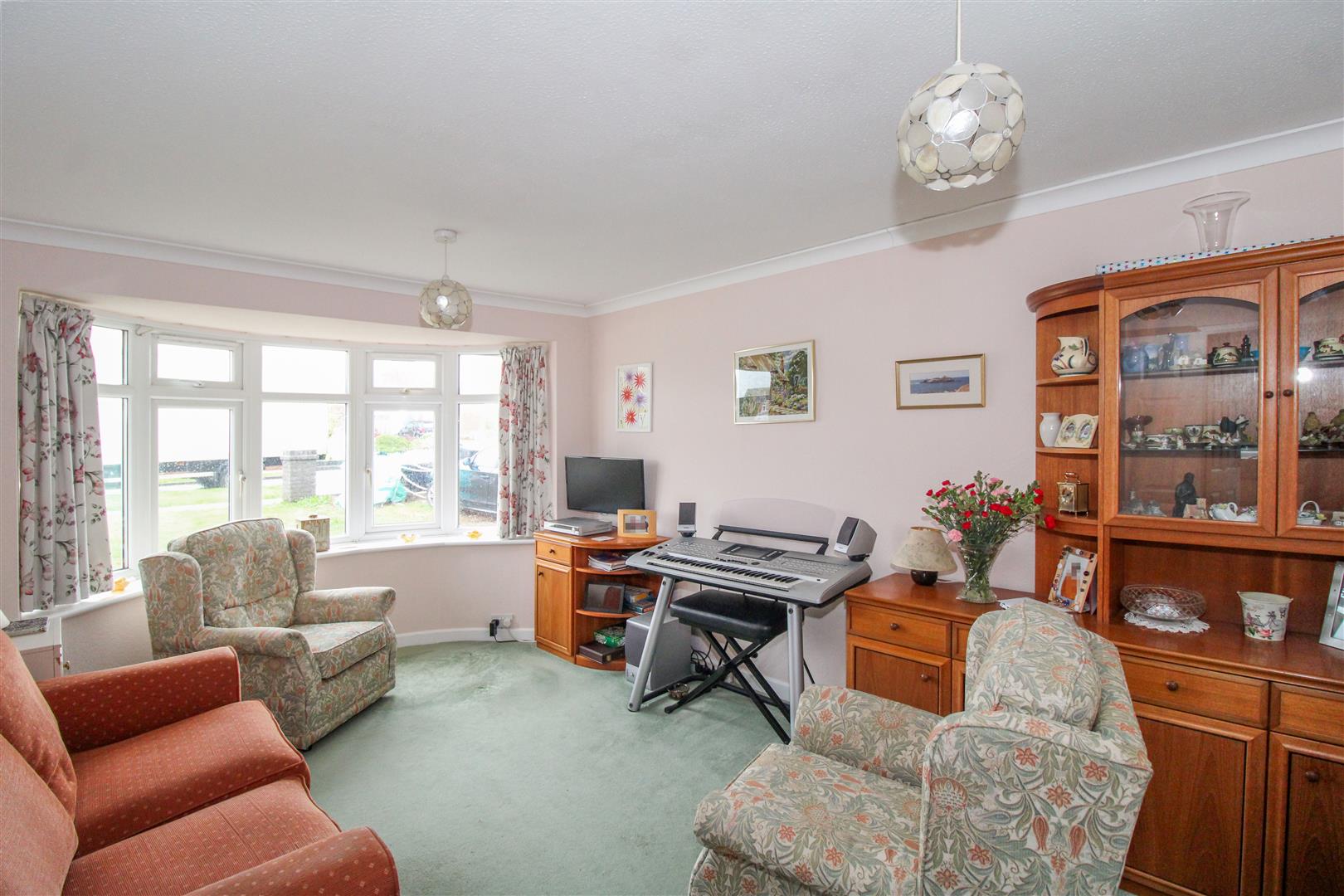 A two bedroom semi-detached bungalow set back from this grass verged crescent, backing south with views to Seaford Head and the sea.