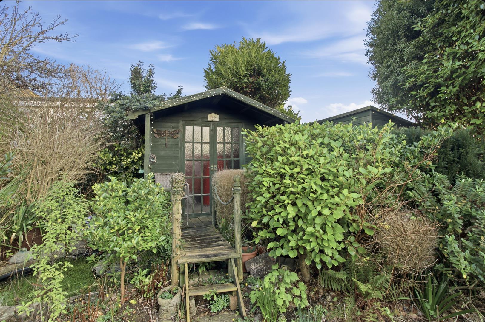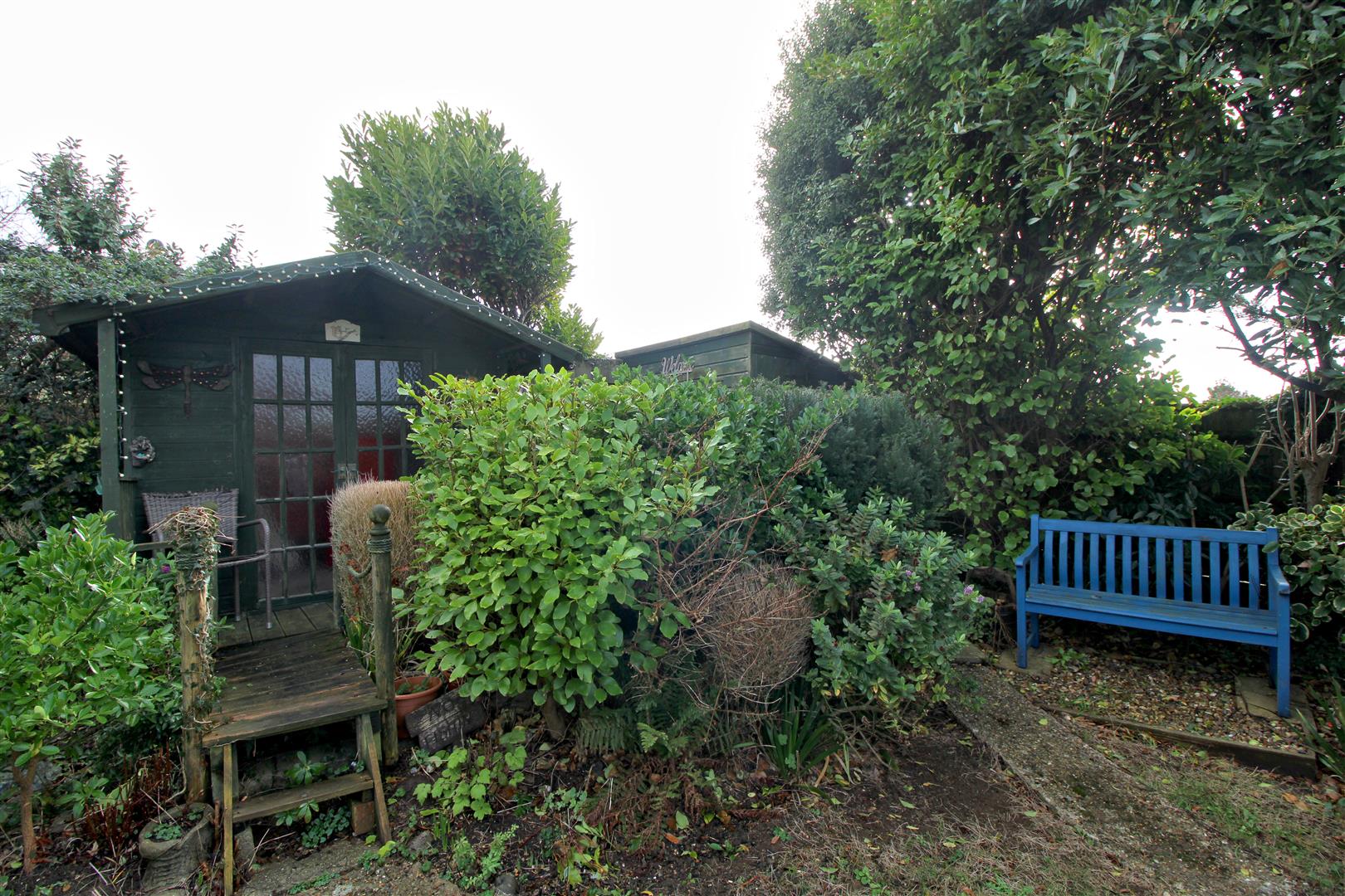 Mainly laid to lawn. Range of mature shrubs and bushes. Shed. Summerhouse. Fence enclosed.