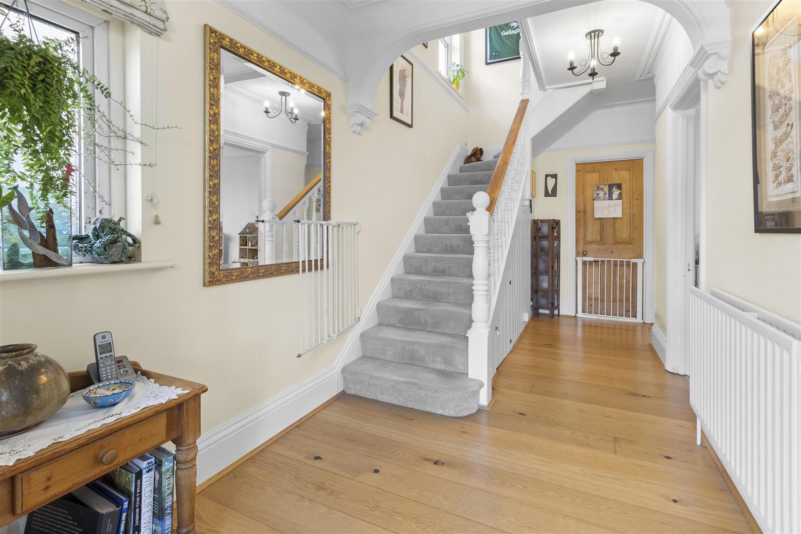 Cupboard housing electric meter and fuses. Double glazed window to side. Radiator. Stairs to first floor and understairs storage cupboard. Engineered oak flooring.