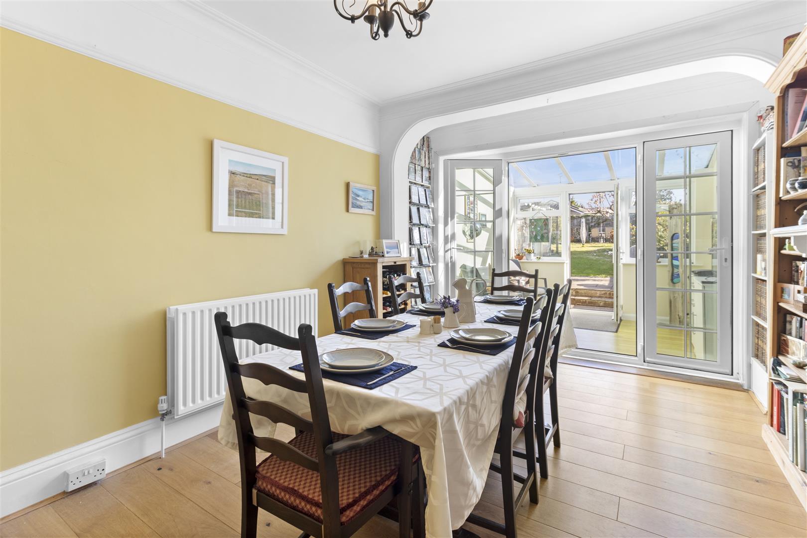 The property offers well-proportioned and versatile accommodation, with a bay-fronted sitting room, separate dining room, kitchen with adjoining utility room, and a conservatory enjoying views over the rear garden. Upstairs, there is a spacious and bright landing, four bedrooms and a family bathroom.