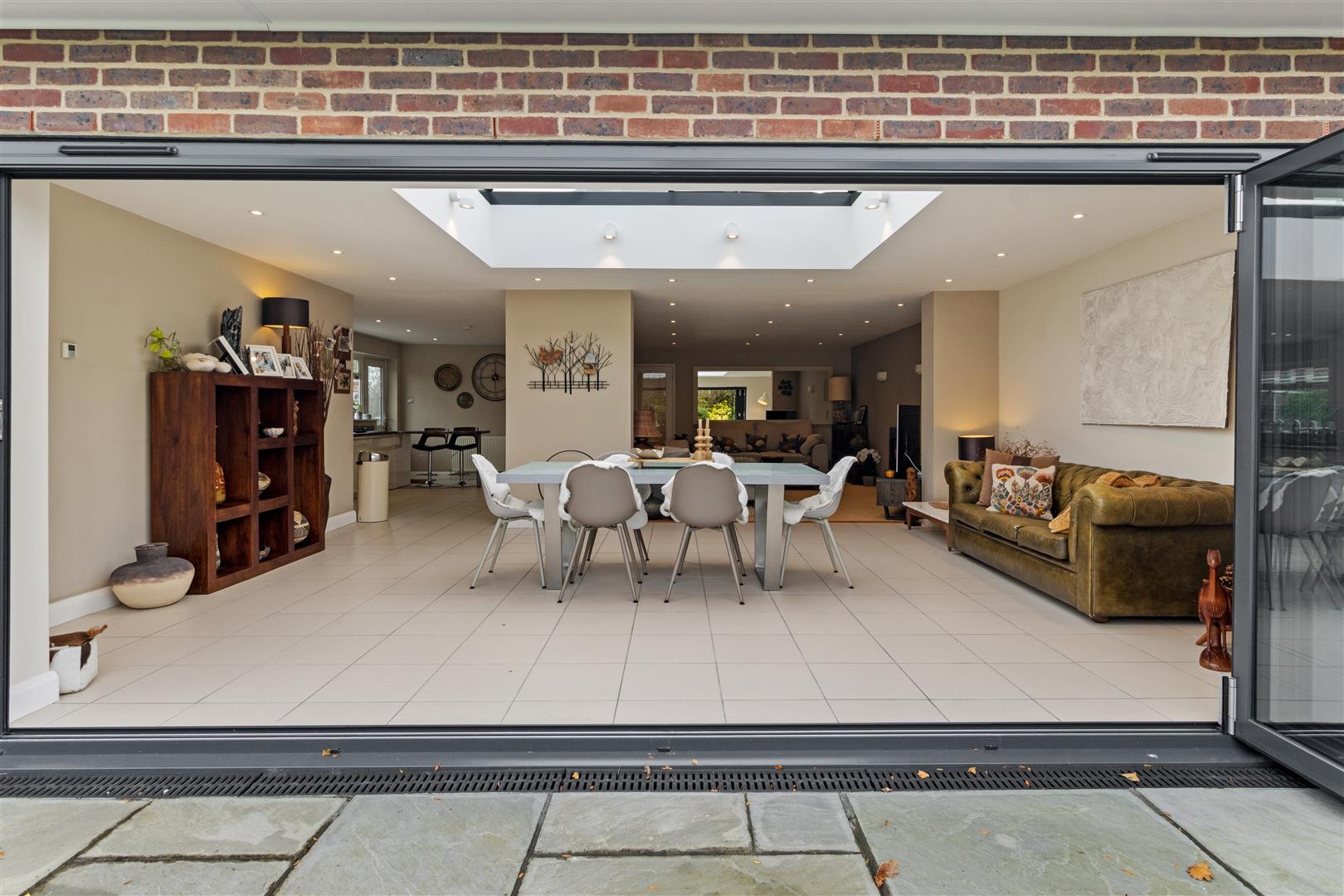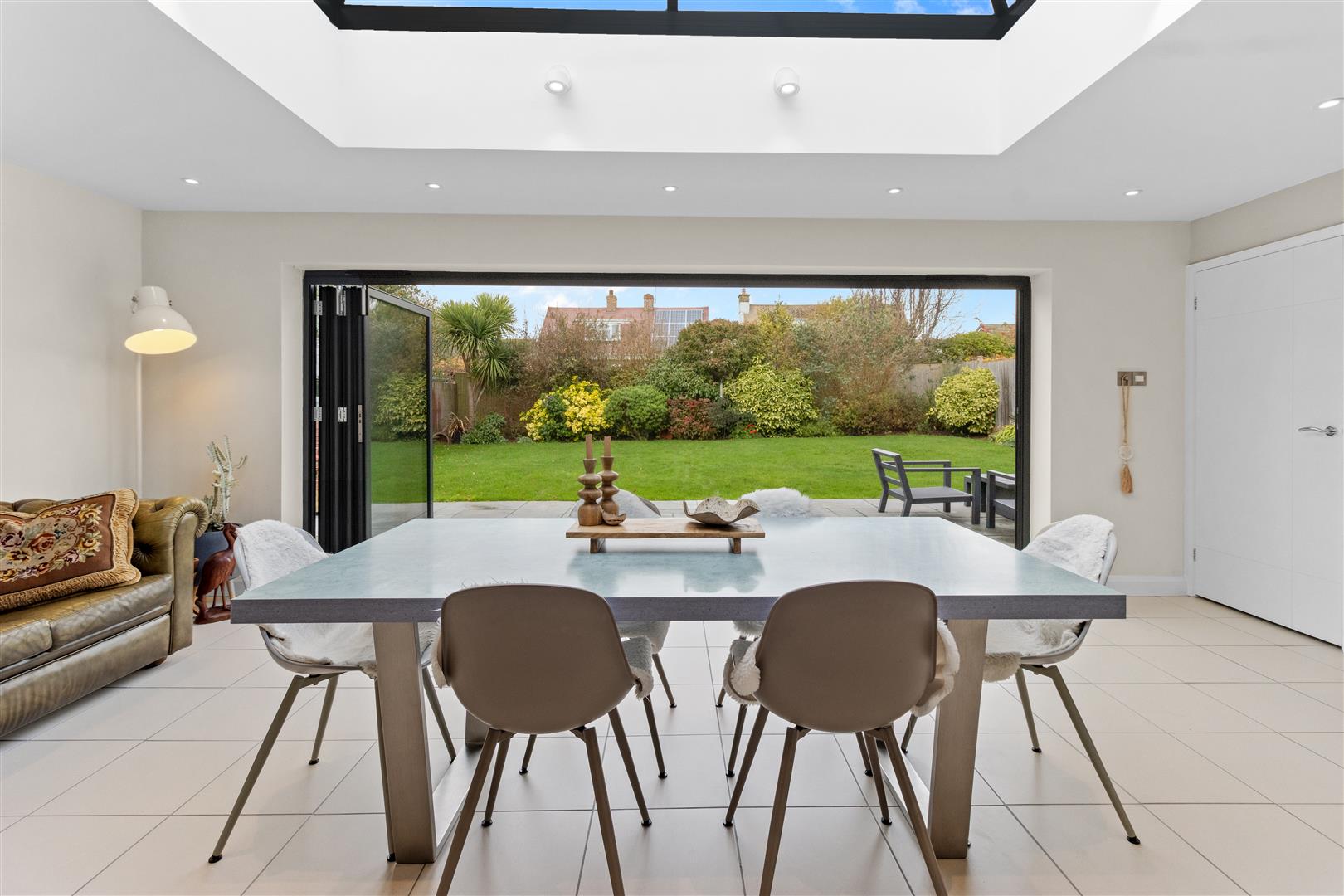 Tiled floor with under floor heating. Bi-fold doors with UV protection to rear garden. Ceiling lantern with UV protection.