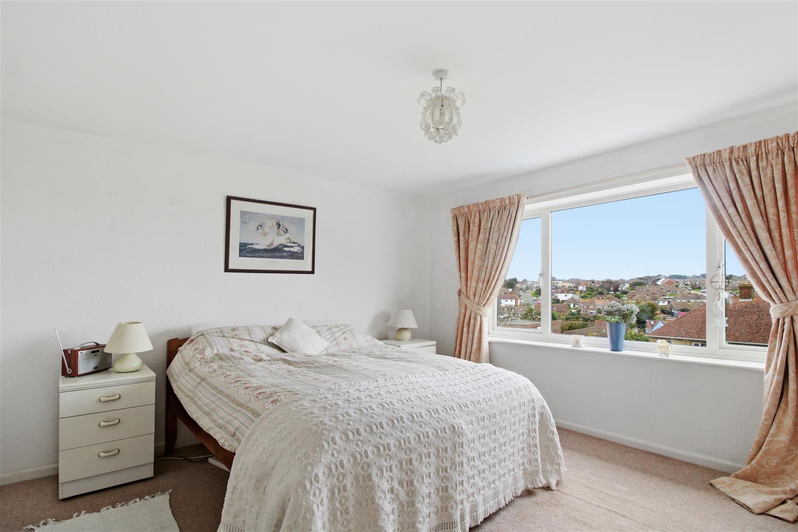 Double glazed window with far reaching views over the garden to Seaford town. Radiator. Built in wardrobe.