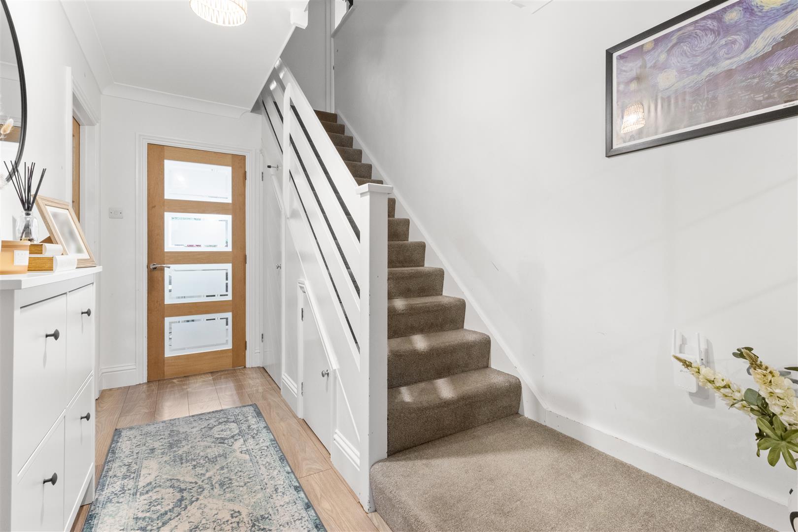 Part laid to lawn with hard standing offer road parking for two vehicles. Covered entrance.
