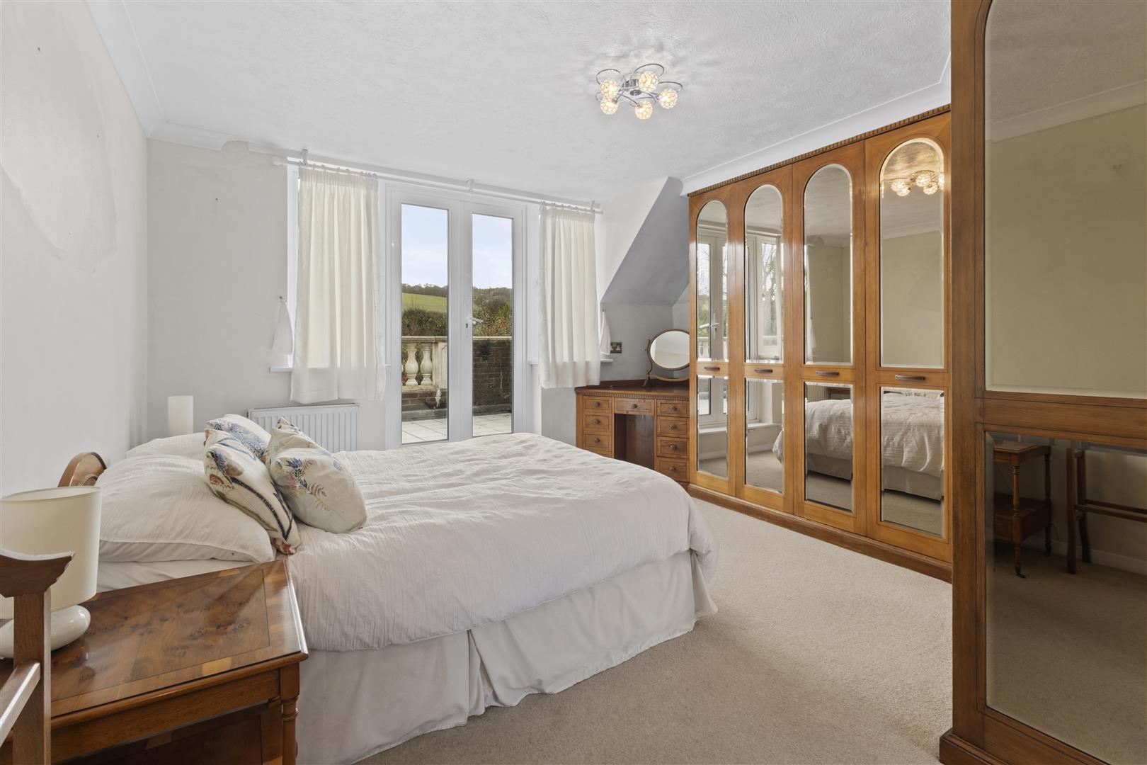 A superb principal bedroom with double doors opening onto a large private balcony with elegant stone balustrade perfect for enjoying views of the garden and Downs ideal for those morning coffee moments. Fitted mirrored wardrobes, additional cupboards and discreet corner storage are included.