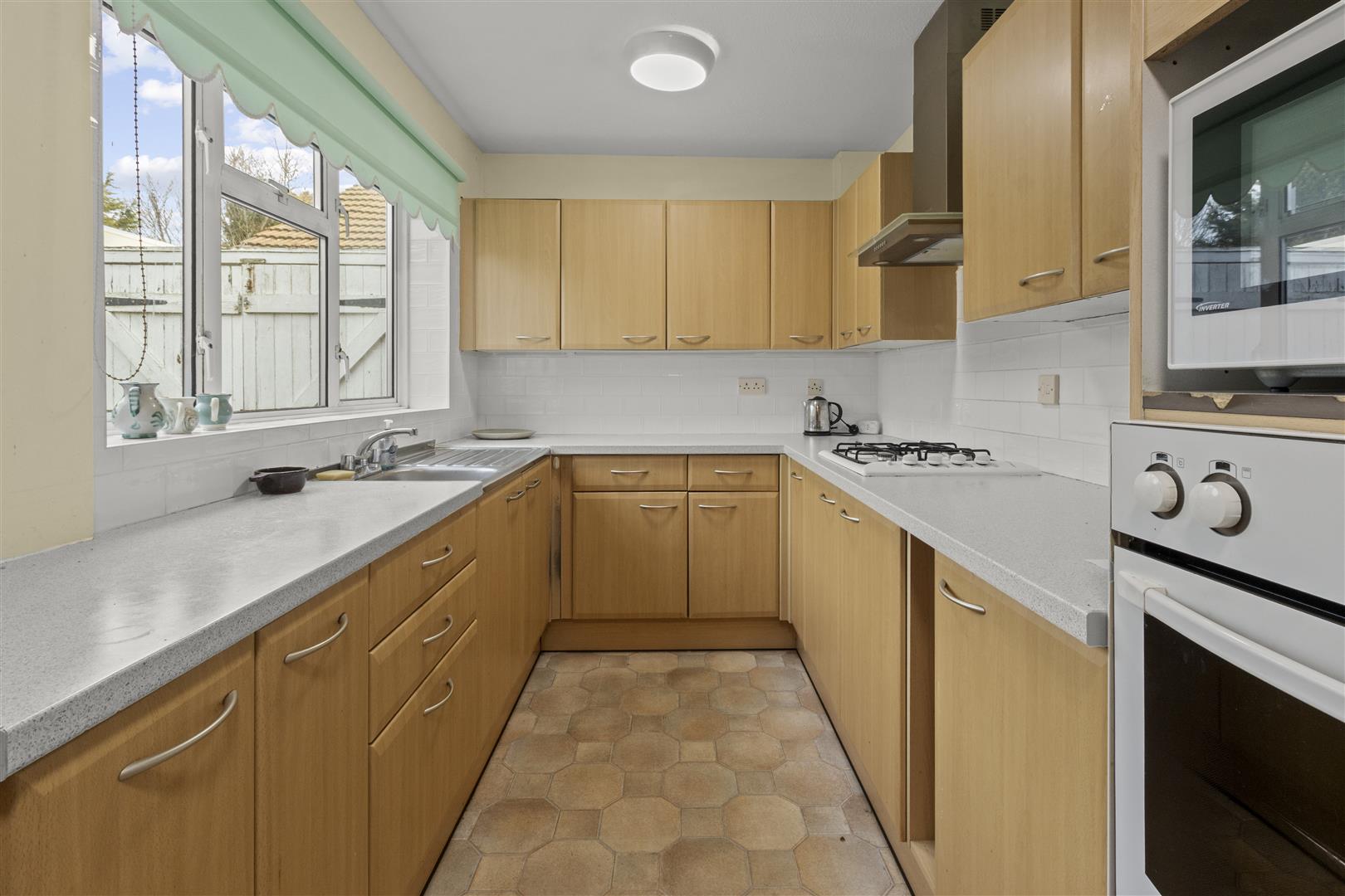 Range of wall and base units. Work surface with inset sink and drainer. Four ring gas hob with cooker hood above and electric oven. Space for fridge freezer. Airing cupboard housing hot water cylinder and storage above. Double glazed window overlooking the garden and single glazed door to conservatory.