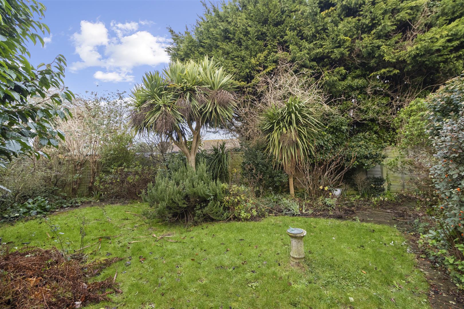 Mainly laid to lawn with mature shrubs, hedging and trees. Paved patio and gated side access.