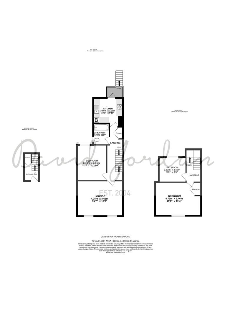 Upstairs are two well-proportioned bedrooms, one with built-in wardrobes and town-centre views, and the other enjoying distant views towards the sea and Seaford Head.