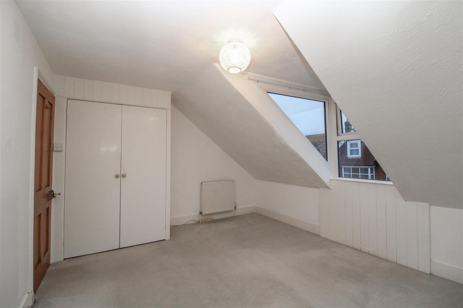 Bedroom two benefits from a rear-facing window with distant views towards the sea and Seaford Head, along with a radiator.