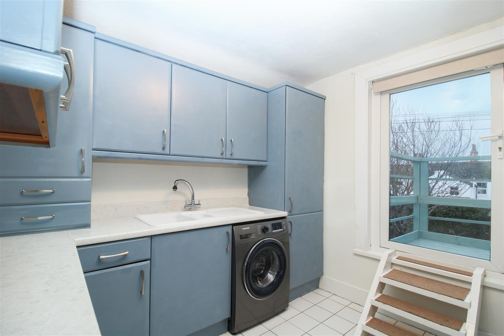 The kitchen is well equipped with integrated appliances and offers direct access via decked stairs down to the garden.
