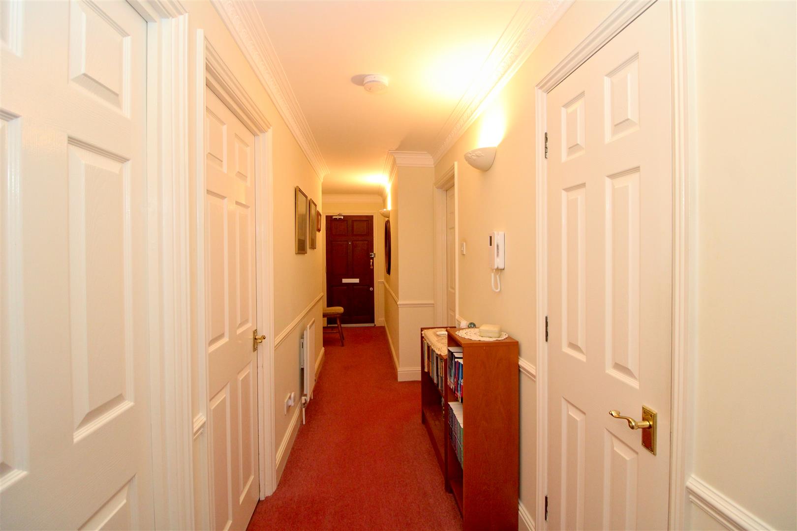 The apartment entrance door opens into a good size hallway with radiator, door entry phone system and convenient cloaks cupboard housing electric consumer unit.