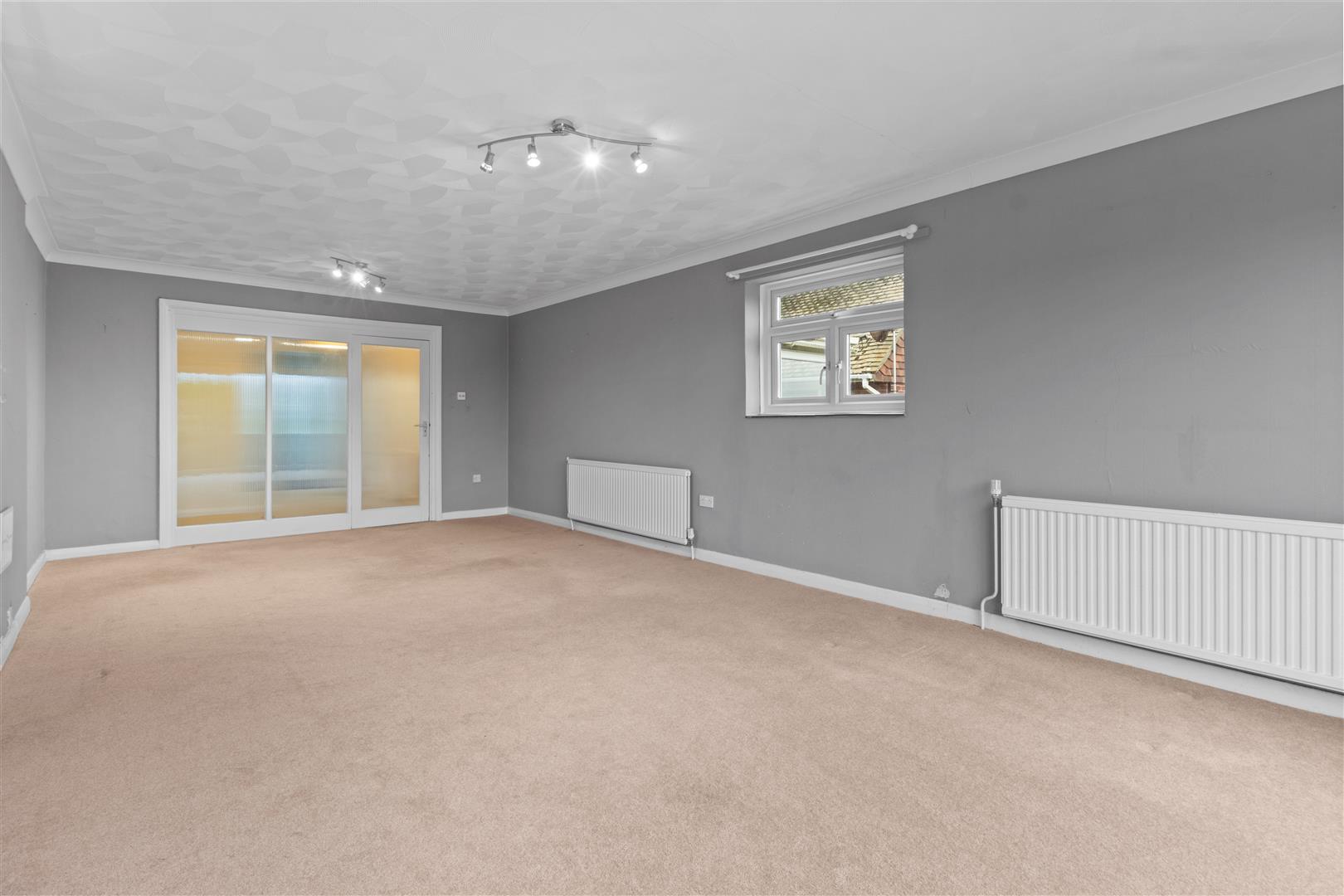 Three radiators. Double glazed windows to both sides and patio doors to rear.