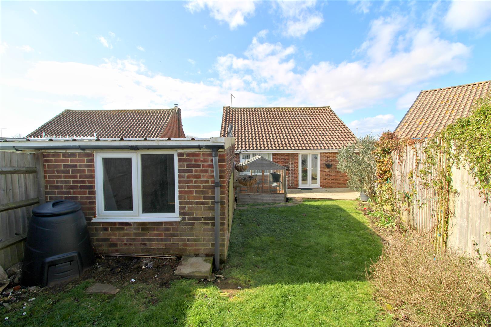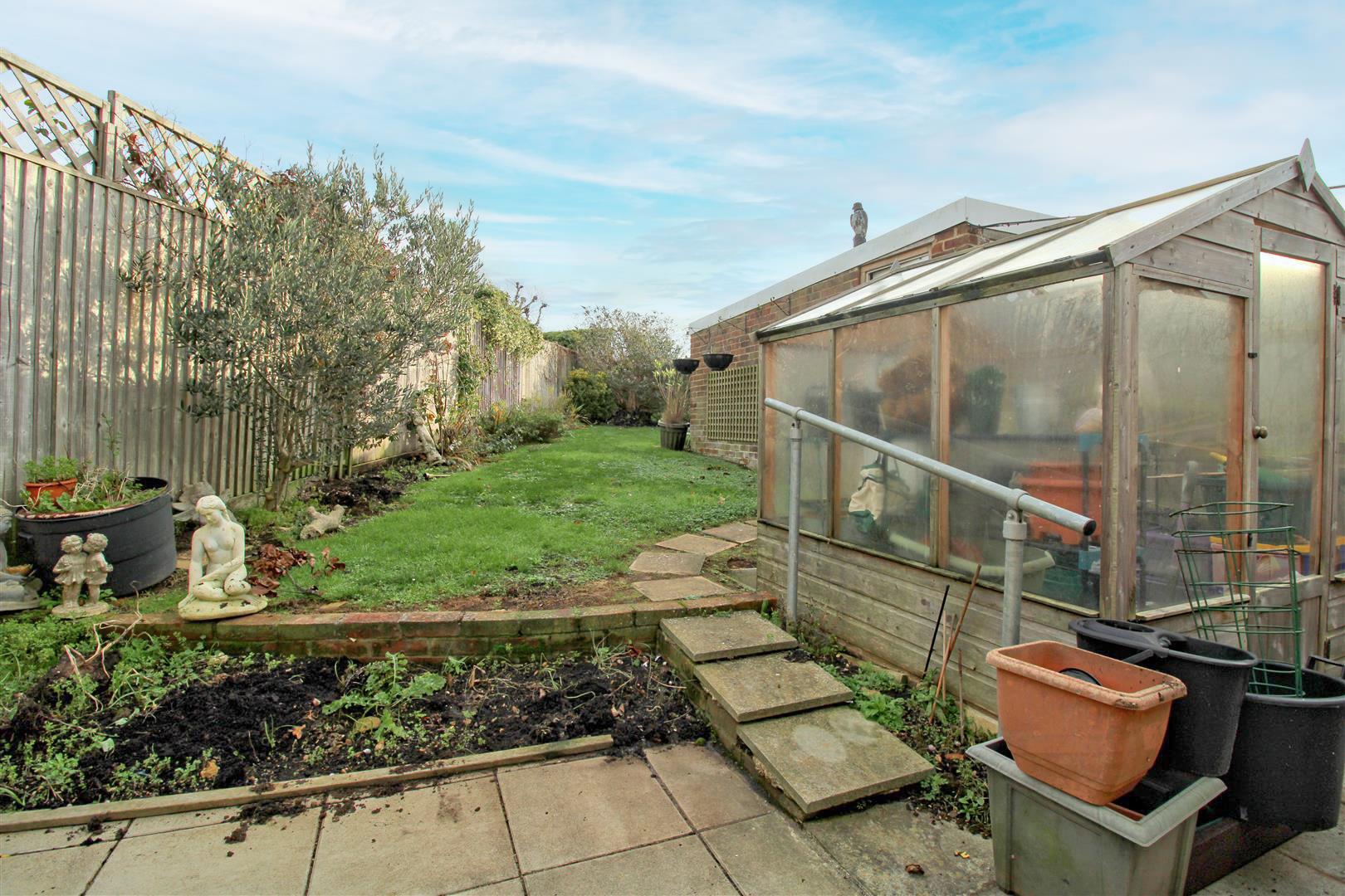 Extending to approximately 60 feet, tapering towards the end. Laid grass, beds of bark chippings and paved patio adjoining the rear of the property. Greenhouse. Paved side access pathway.